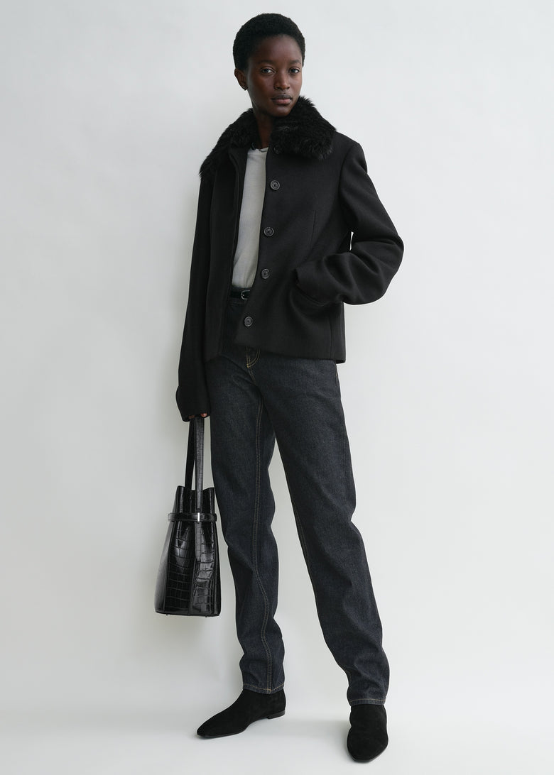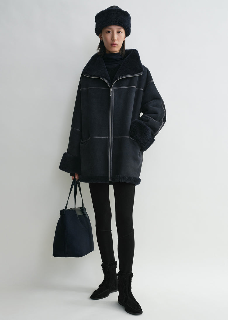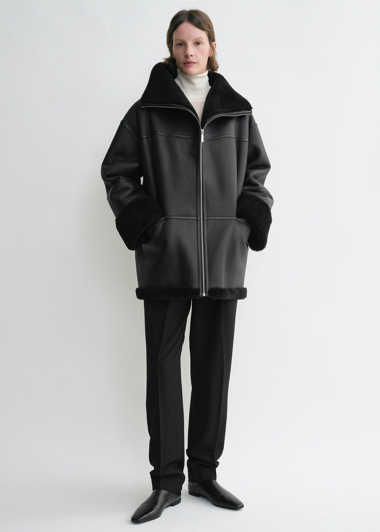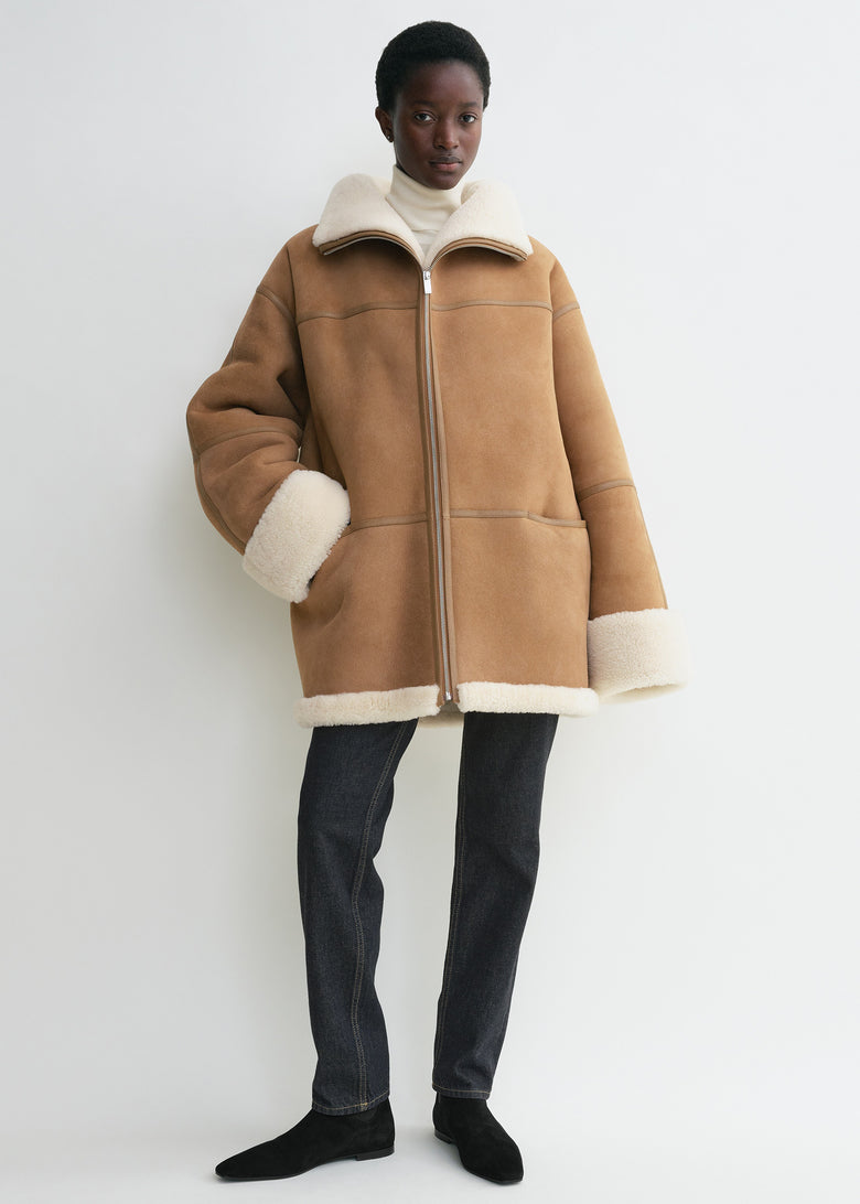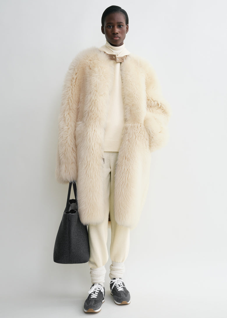 Tactile shearling statements and accents shaped with the sculpted volume and refined details that are distinctly TOTEME.