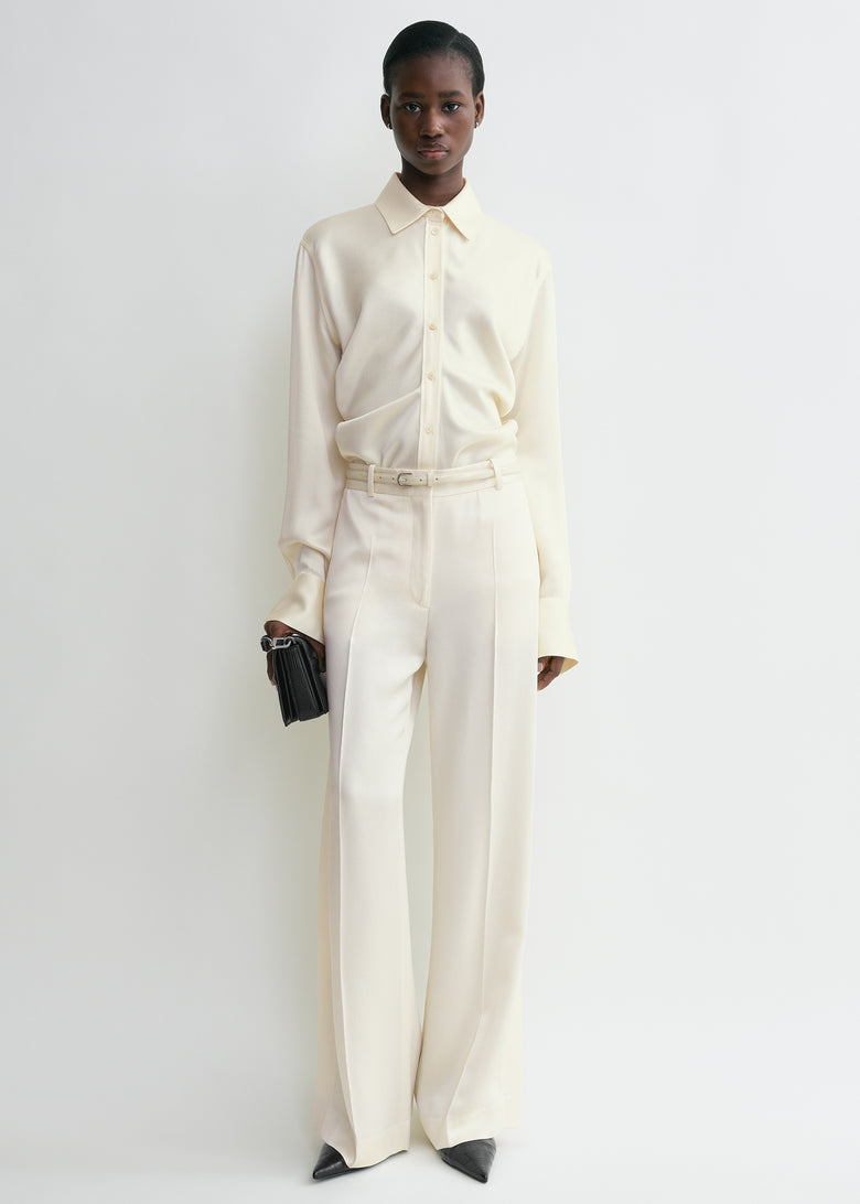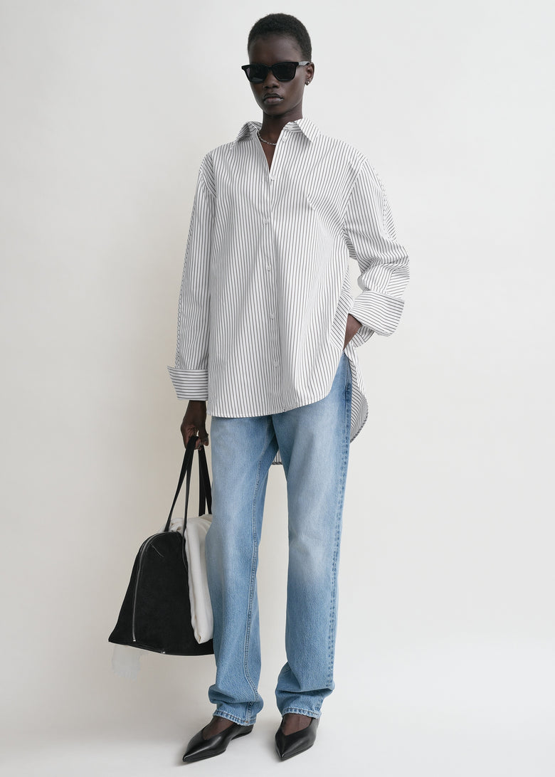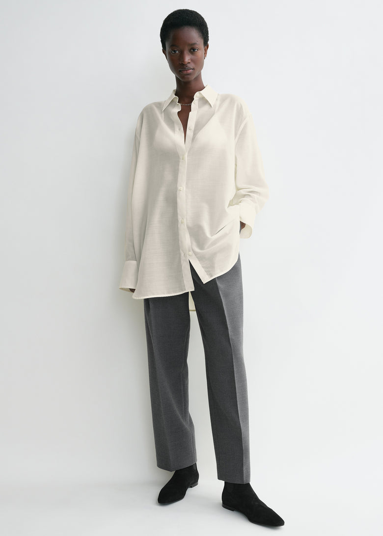 Slim and oversized TOTEME shirts and blouses crafted from fine materials like organic cotton, linen and silk.