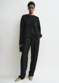Signature TOTEME sweater knitted with light and hairy alpaca-blend yarns for a cozy sensation. It has a dramatic boxy silhouette with oversized proportions and extra-long sleeves. Dress it up and d...