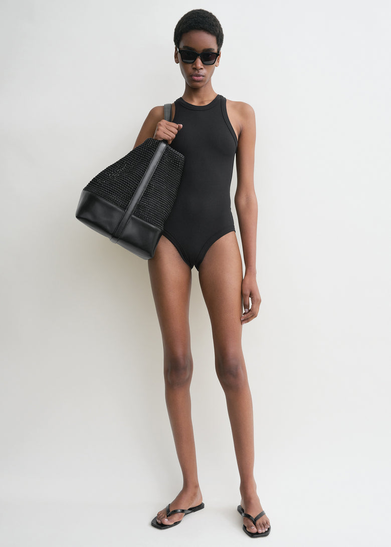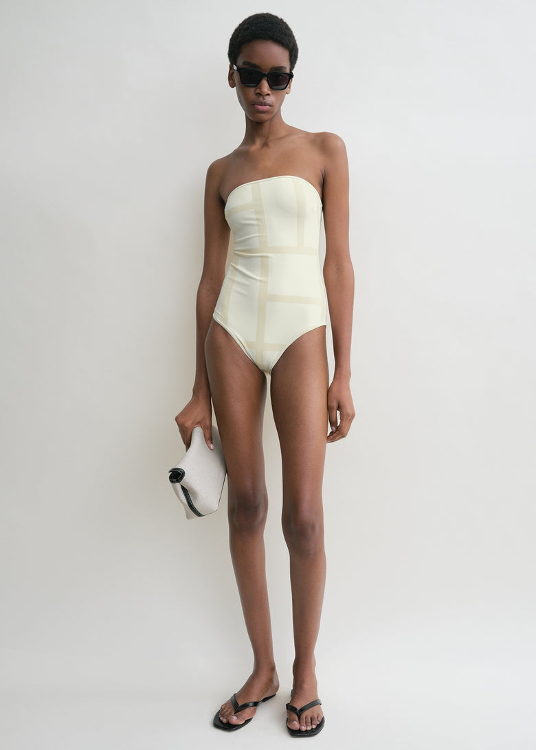 TOTEME's swimwear edit ranges from women's swimsuits, bikini tops and bottoms to cover-ups, beach towels and accessories.