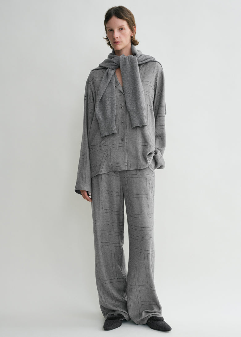 Monogram flannel pj top smoke melange