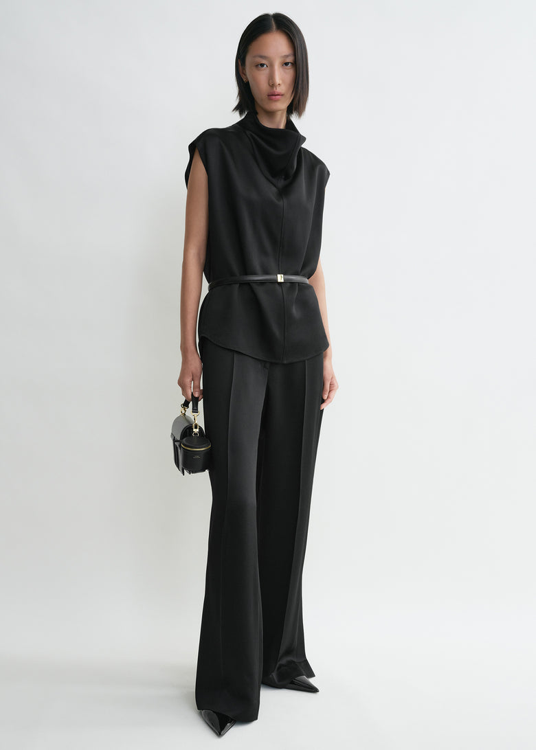 Slouch waist crinkled top black