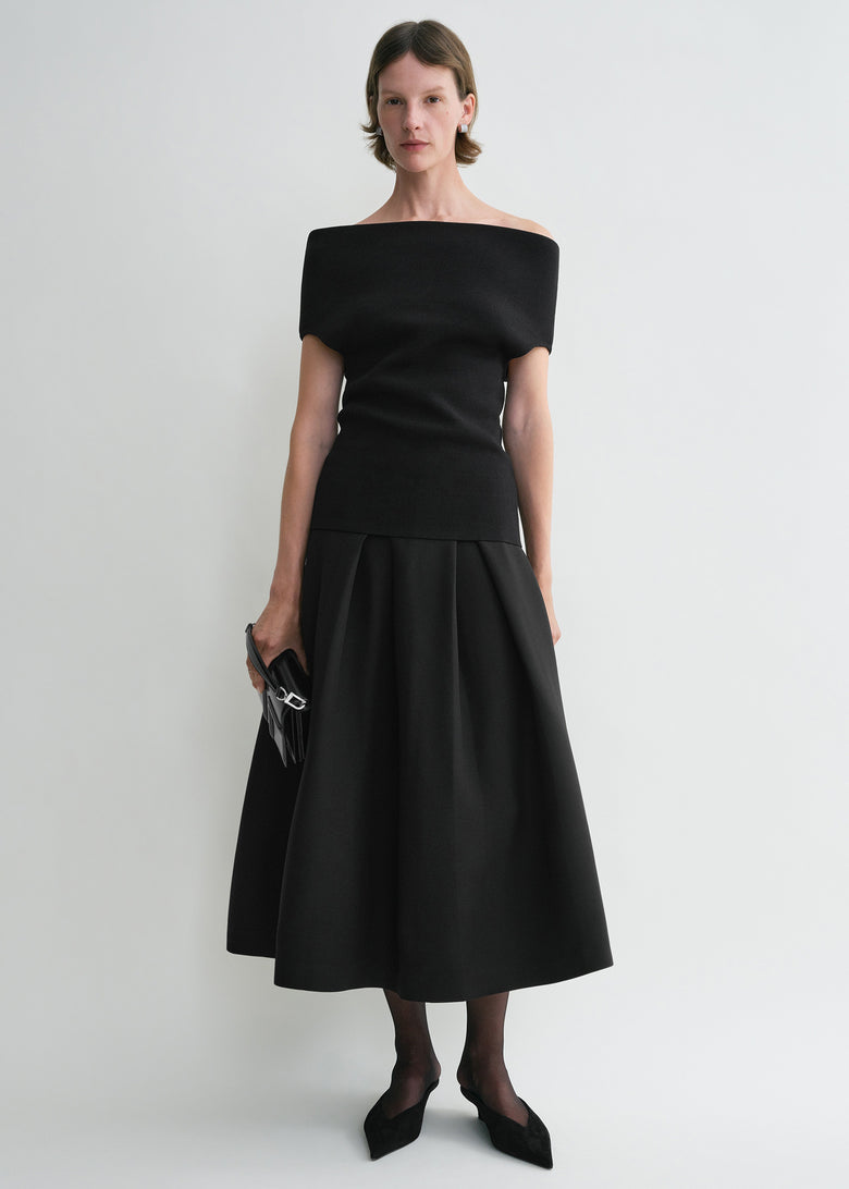 Slouch waist basketweave top black