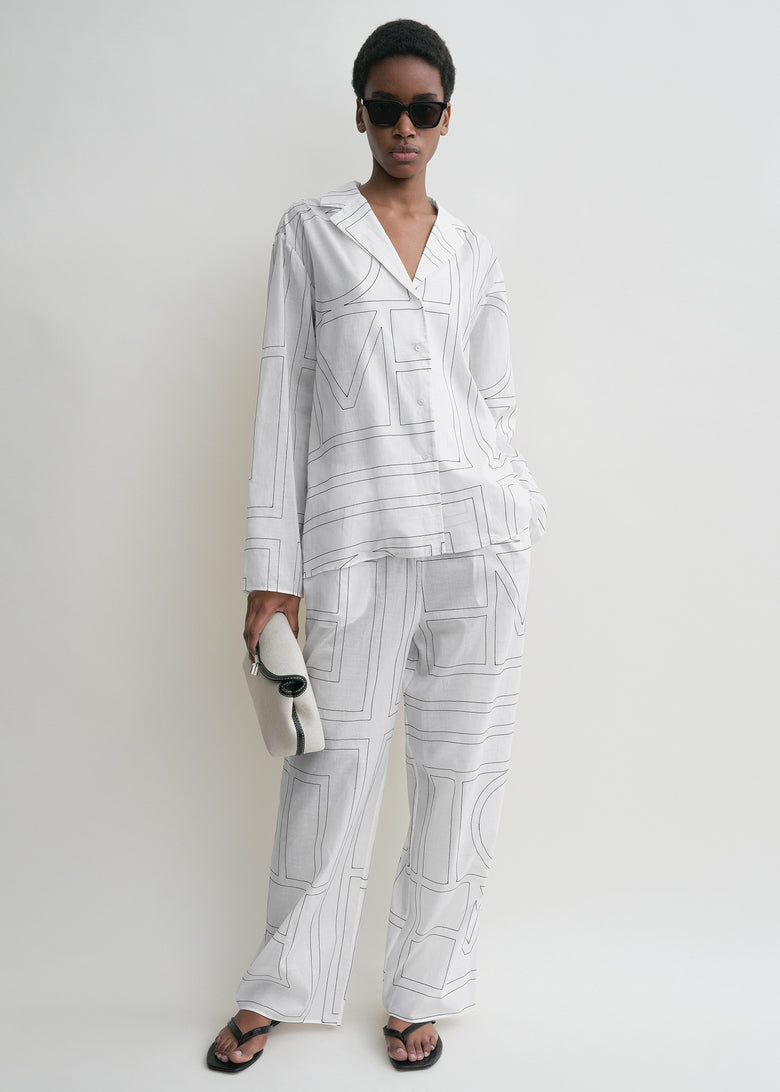 Monogram cotton-blend pj top white/black