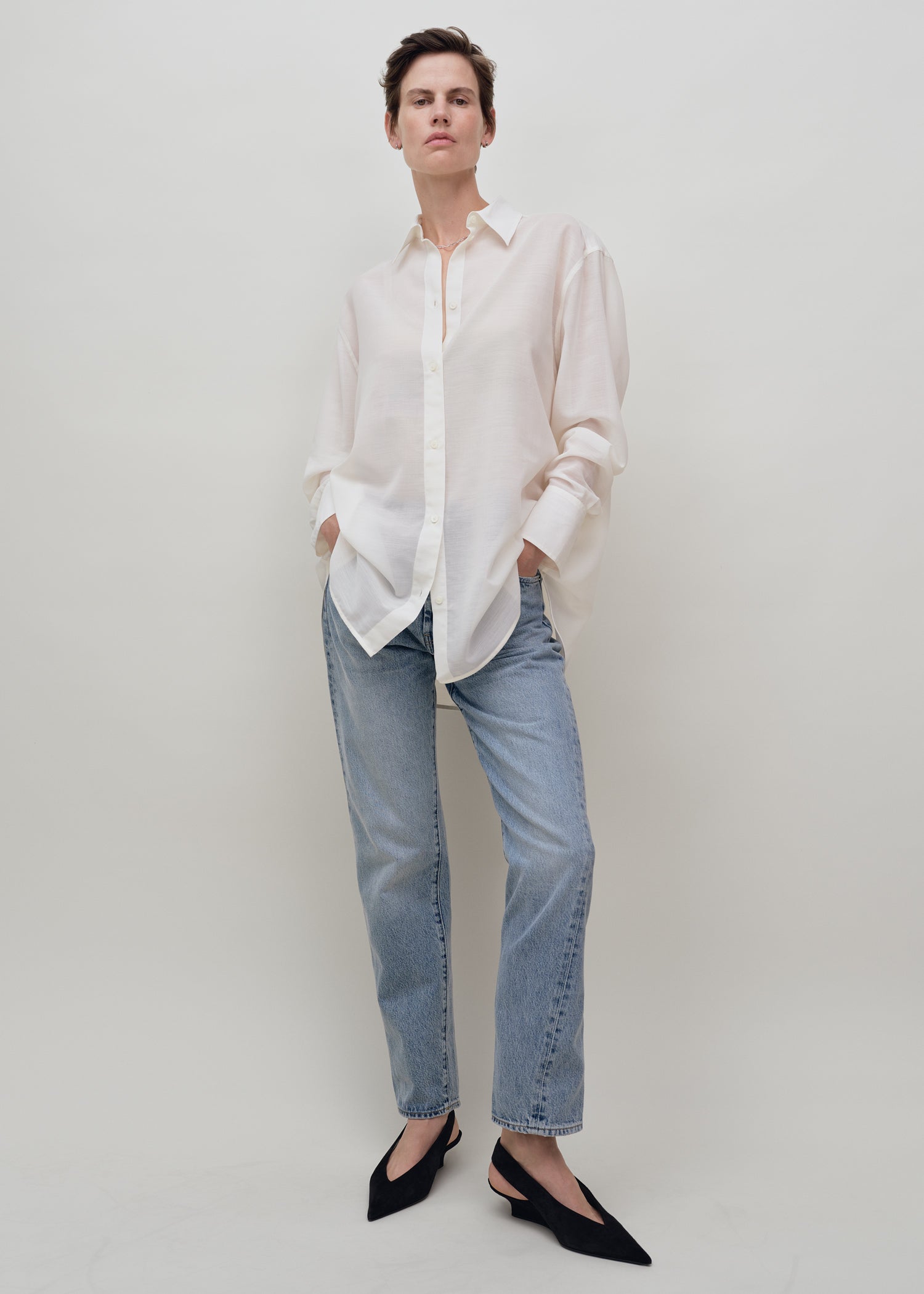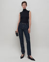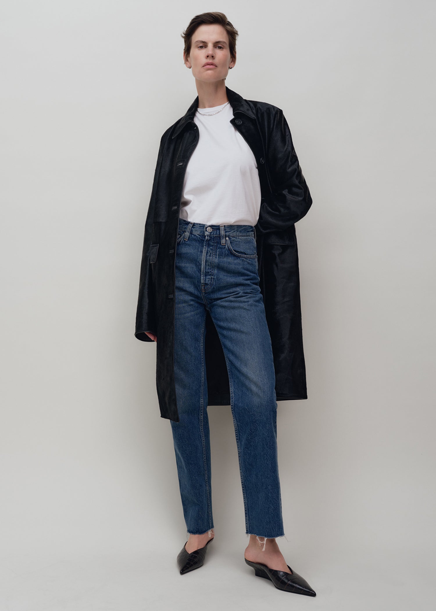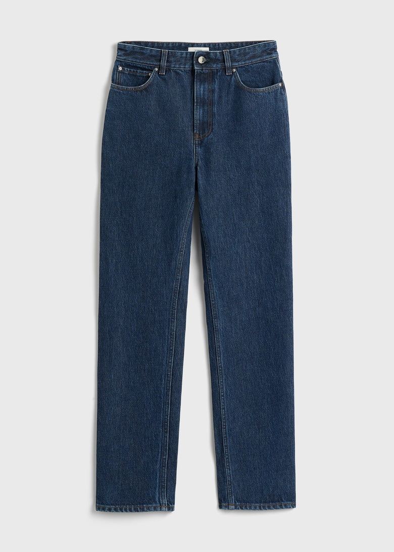 Mid-waist, slim-straight fit, and button fly. A lengthier variation on Classic, with finished hems.