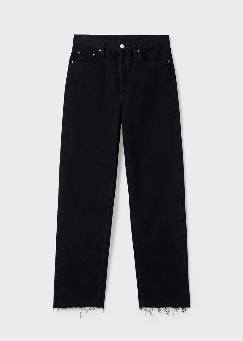 A timeless cut of reimagined proportions. Slim-straight fit, button fly and a cropped, raw-hem finish.