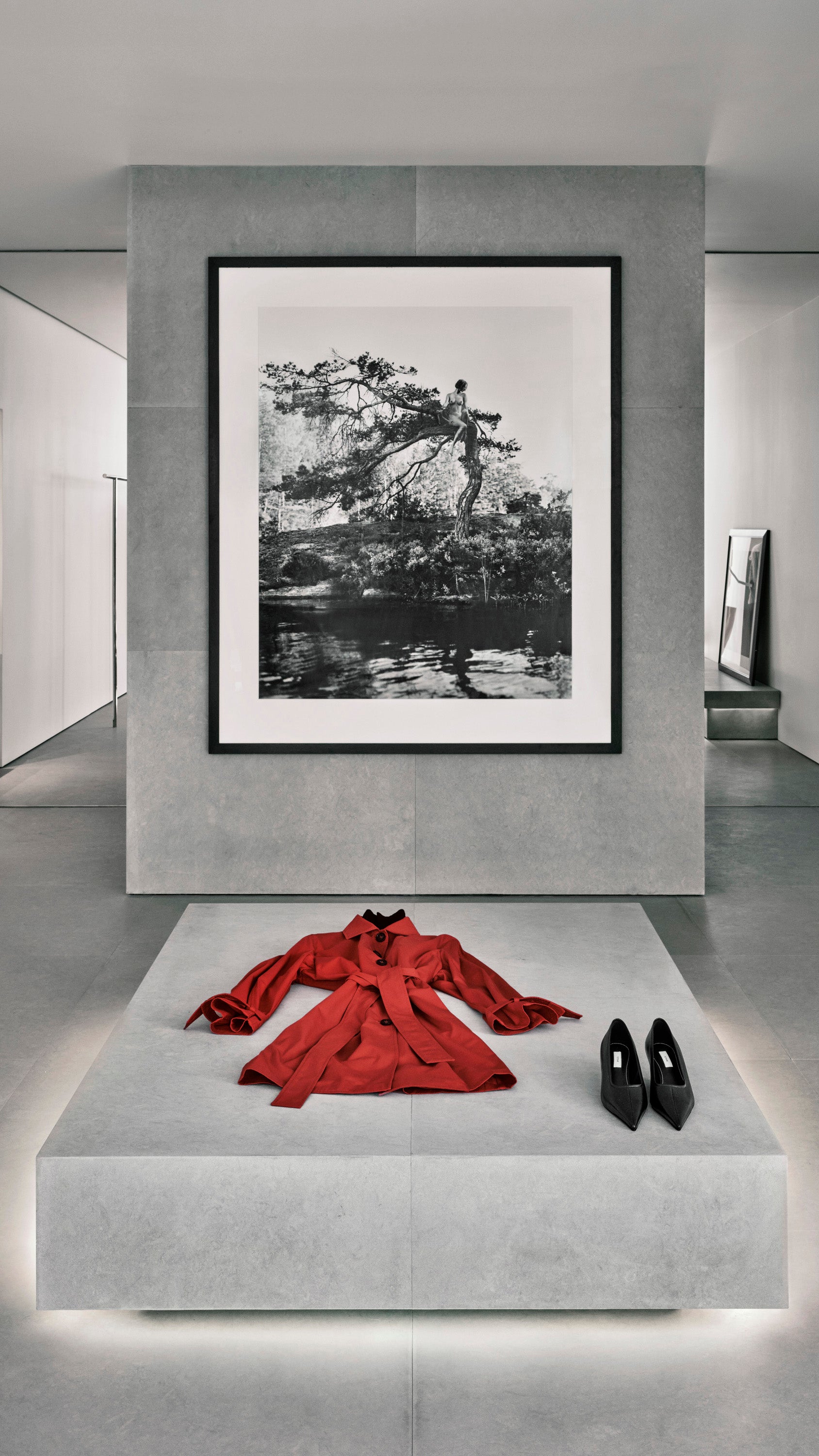 Set inside a historic townhouse, 27 Faubourg Saint-Honoré offers a tranquil environment for discovery. On the ground floor, iconic photographs by renowned Swedish photographer Mikael Jansson, a longtime TOTEME collaborator, appear throughout as a permanent exhibition of his work connected to Sweden. Among the images selected from the artist’s archive is 'Renee #1', Ornö 1995, photographed in the Stockholm archipelago. Jonas Bohlin’s 'Iron Concrete' chair, a defining expression of Swedish design, anchors the flow between floors.