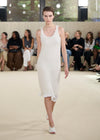 The Spring Summer 26 runway collection distills undone beauty. TOTEME icons like the tank, trench coat and pajama are deconstructed with easy-going precision, unravelling finishes, and a liberating mix of time-softened textures.
