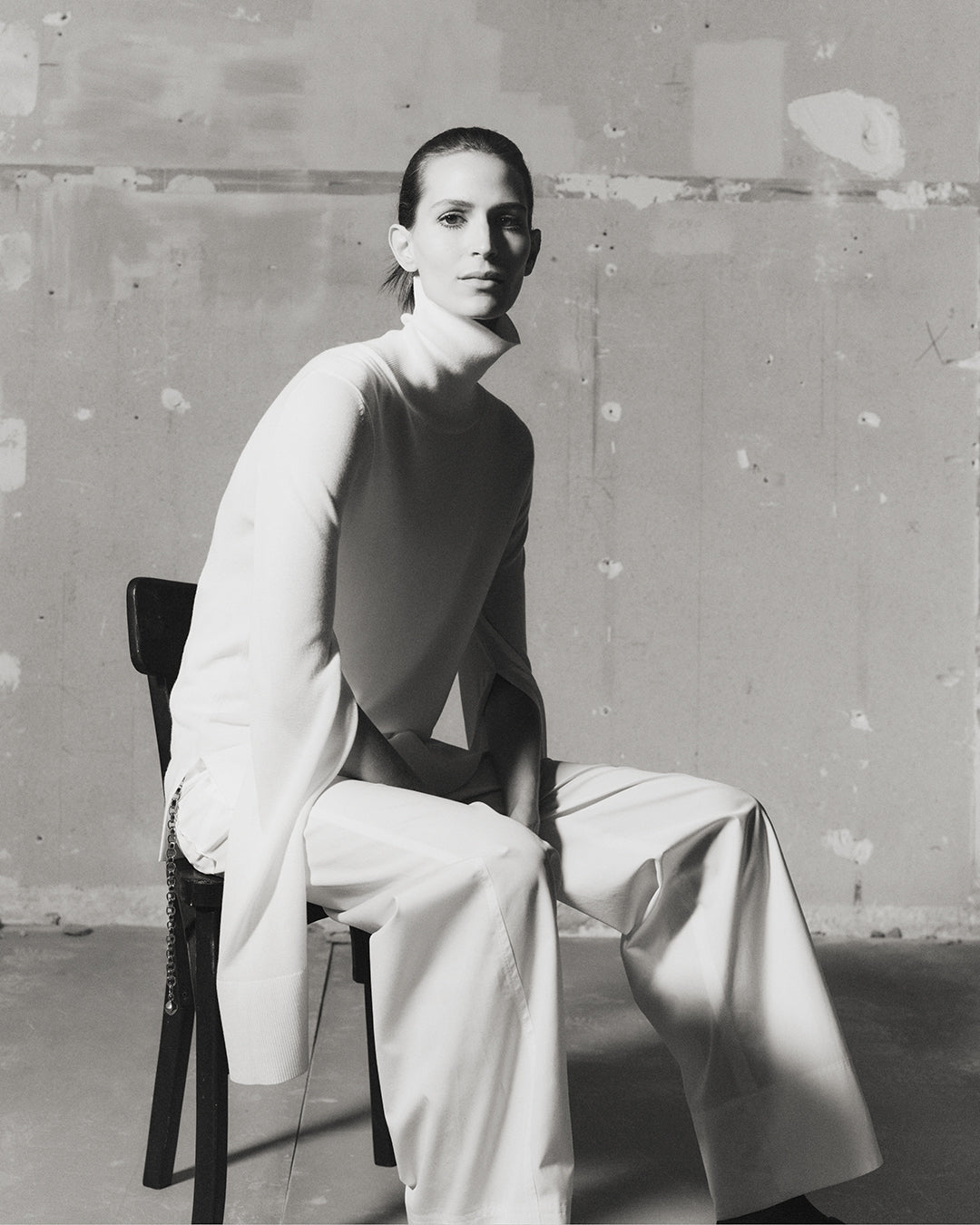 Jeanne Cadieu photographed by Mikael Jansson in the future Paris flagship. In raw space, intimate portraits draw focus to the soft power of the collection.