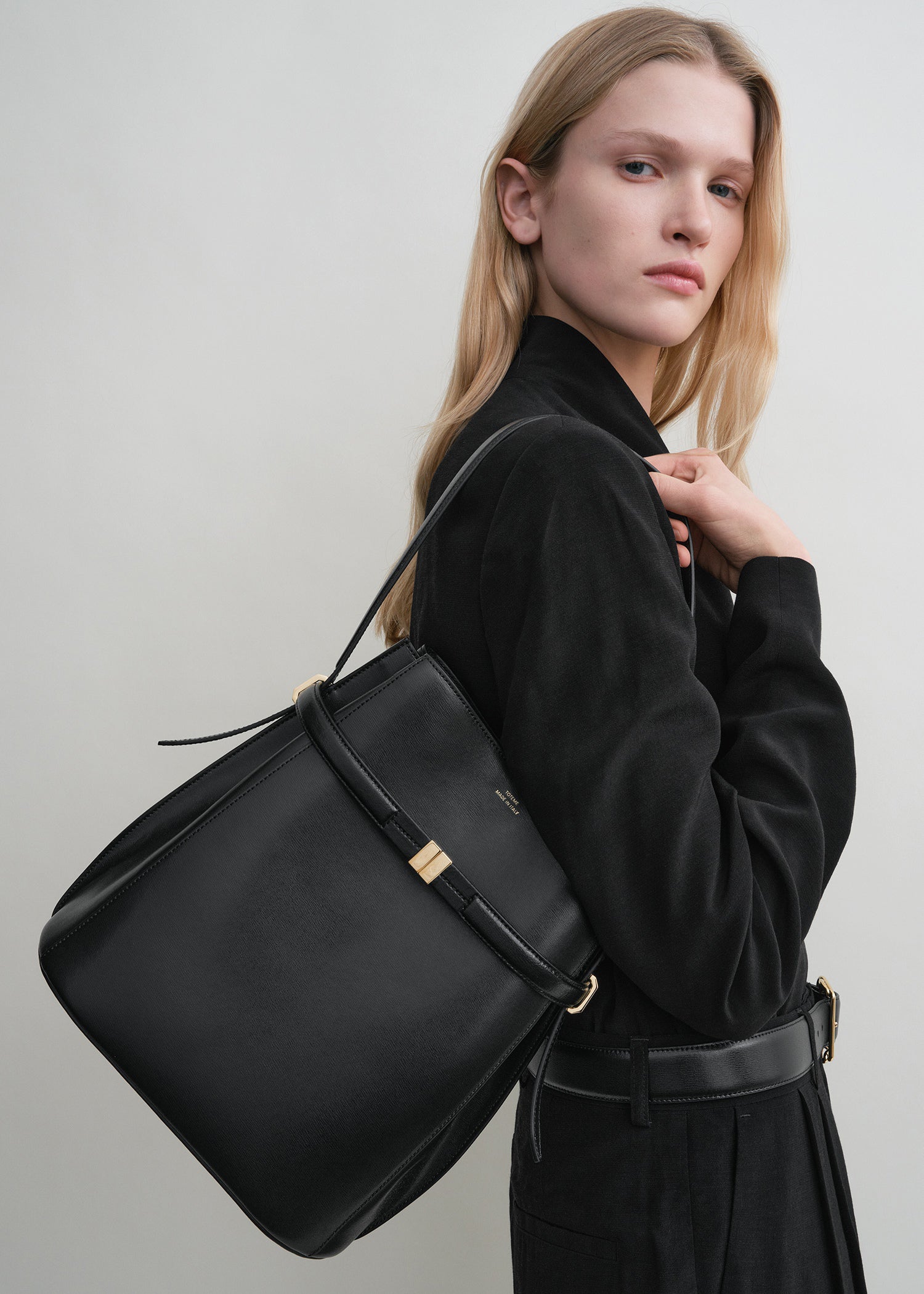 The Belted buckle bag debuted on the Fall Winter 24 runway, marking TOTEME's 10th anniversary. Crafted in Italy from softly textured Palmellato leather with gold-tone hardware, it features an elega...