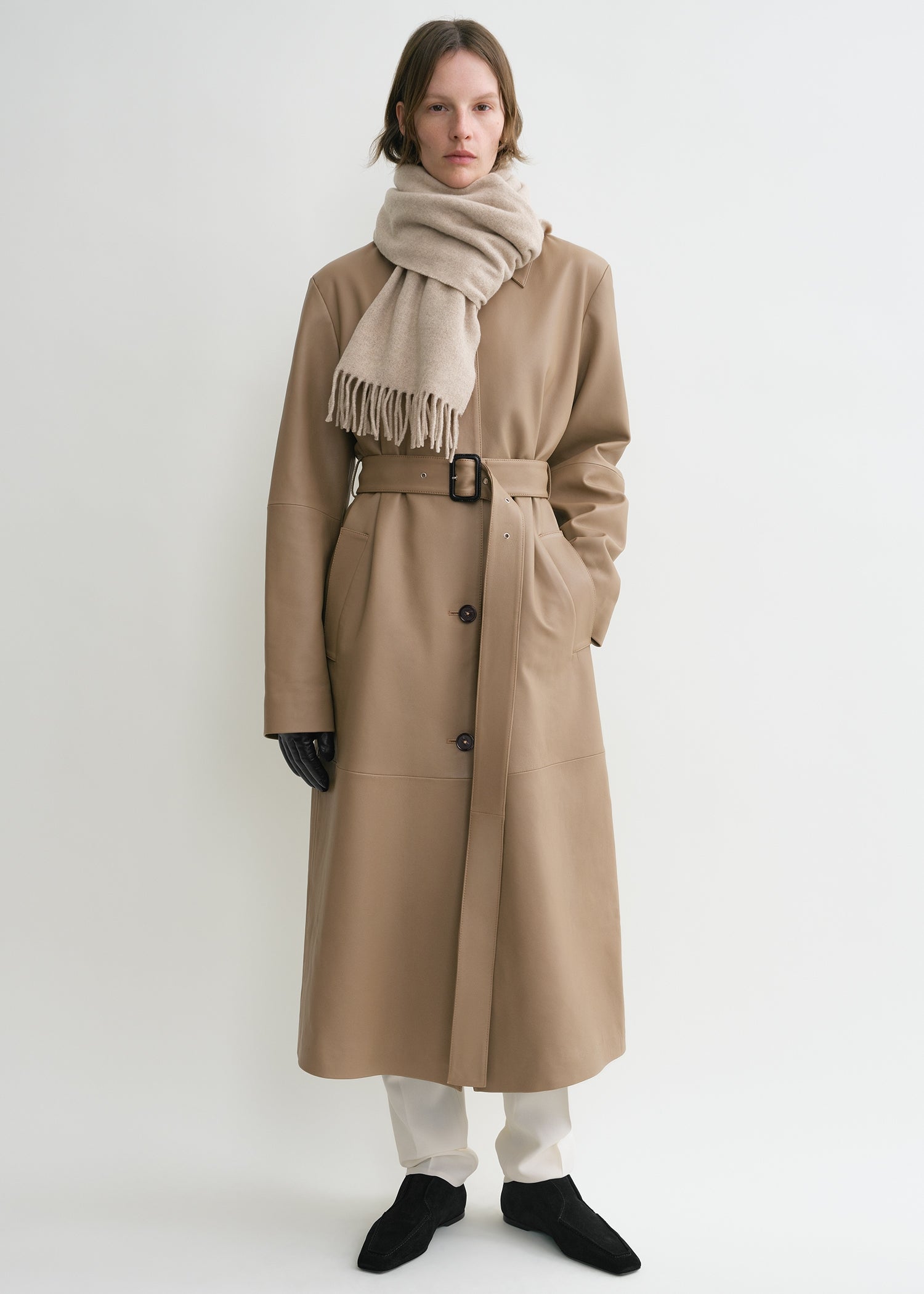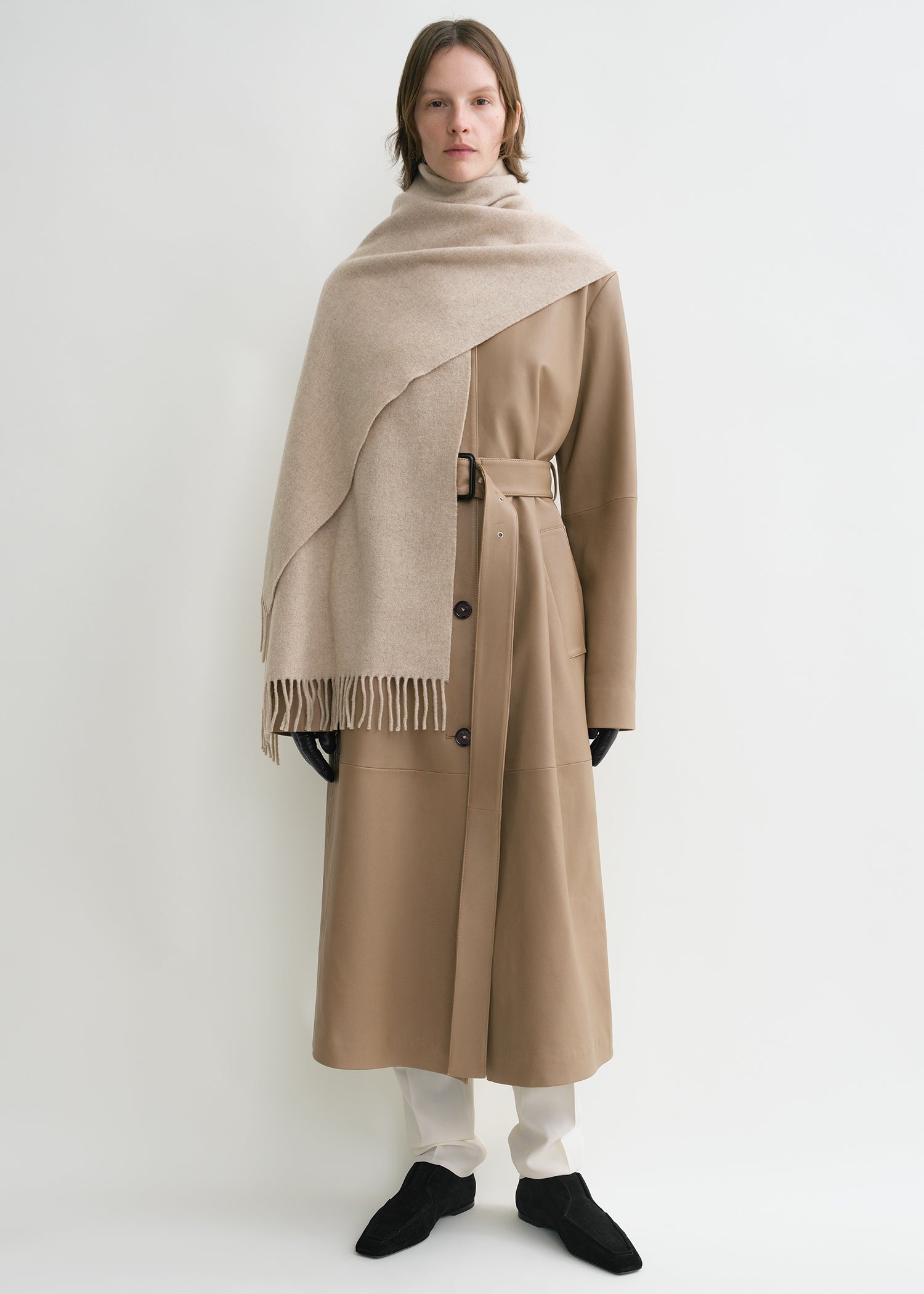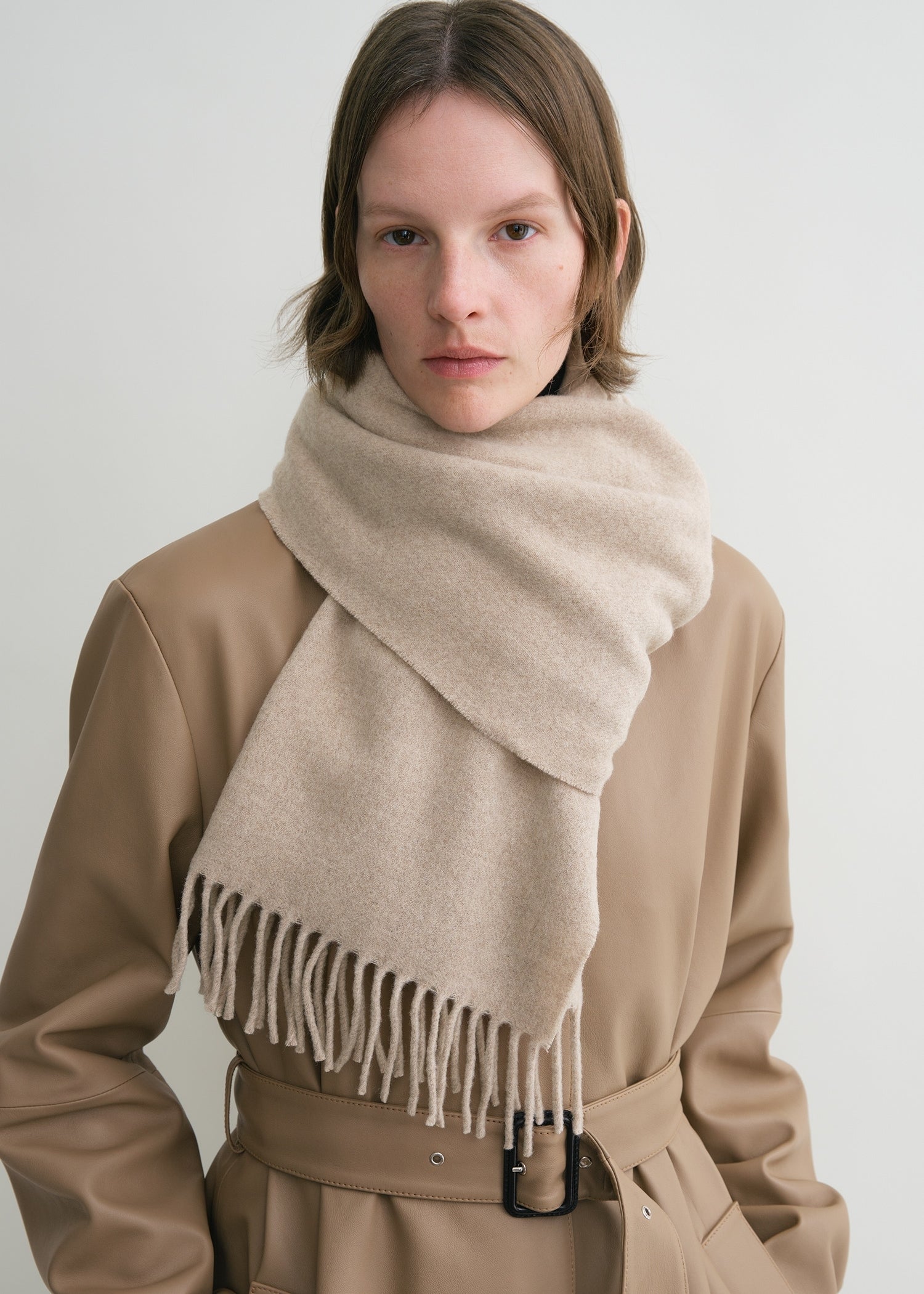Classic TOTEME scarf made in Italy from responsibly sourced wool. It has a rectangular shape measuring 220x50cm with fringed edges and a monogram label. Wear it throughout winter over your favorite...