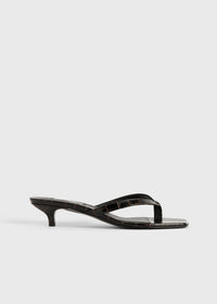Croco-embossed heeled flip flops dark brown