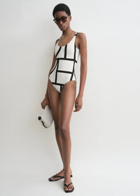 Designer's note: "A cornerstone of TOTEME’s summer offering since the beginning, this classic swimsuit naturally belongs in the Garderob curation. Printed with our distinctive monogram in black and...