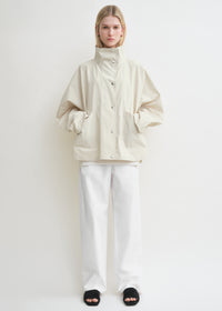 Windbreaker-style TOTEME jacket made from a whisper-light, water-repellent cotton blend that is perfect for summer. It has ample batwings as well as slanted patch pockets and fastens with tonal sna...